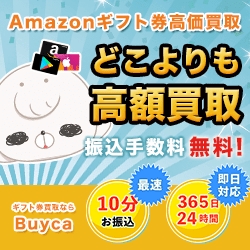 Amazonギフトが結構余ってて、何も知らずに金券ショップに持ち込んだら買取NGで。途方に暮れてネットで検索していたらここ(バイカ)を見つけました。わけも分からずとりあえず登録したらすぐに連絡があって、メールの内容もビジネスライクだったので買取をお願いしました。換金率もたかかったし、ついでに余っていたiTunesカードも買い取ってくれて、臨時収入がゲット出来たので焼き肉を食べにいきました。