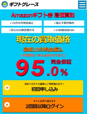 ギフトグレースの換金率(買取率)は95%